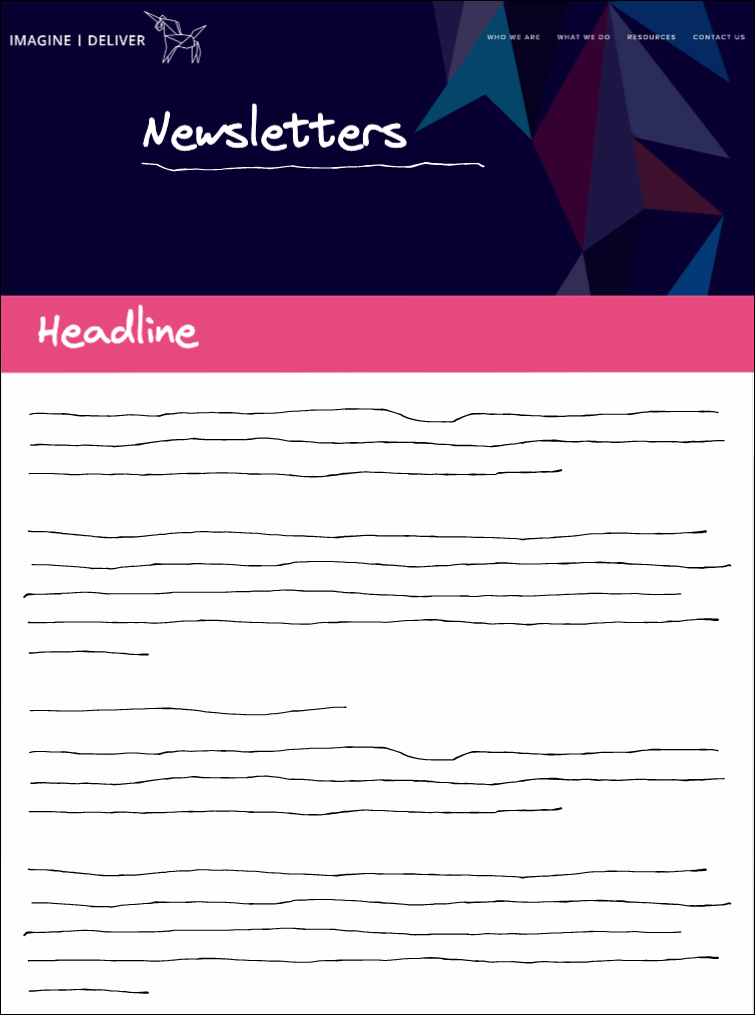 A user persona, “Connie,” was created to represent a typical Imagine Deliver website visitor. Connie, a mid-level UX researcher from Minneapolis, is interested in exploring equitable design practices and is looking for thought leaders who offer actionable strategies and resources.